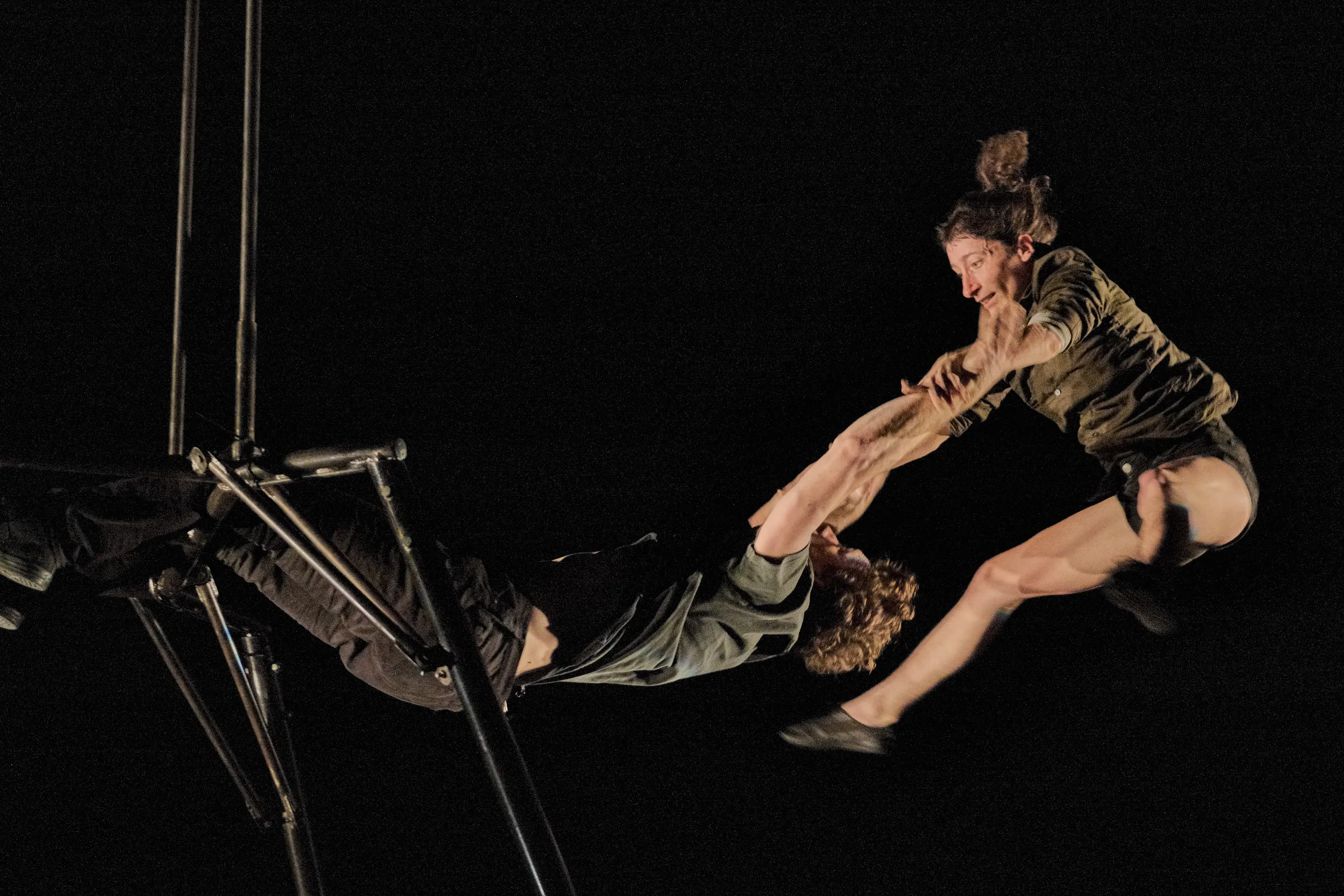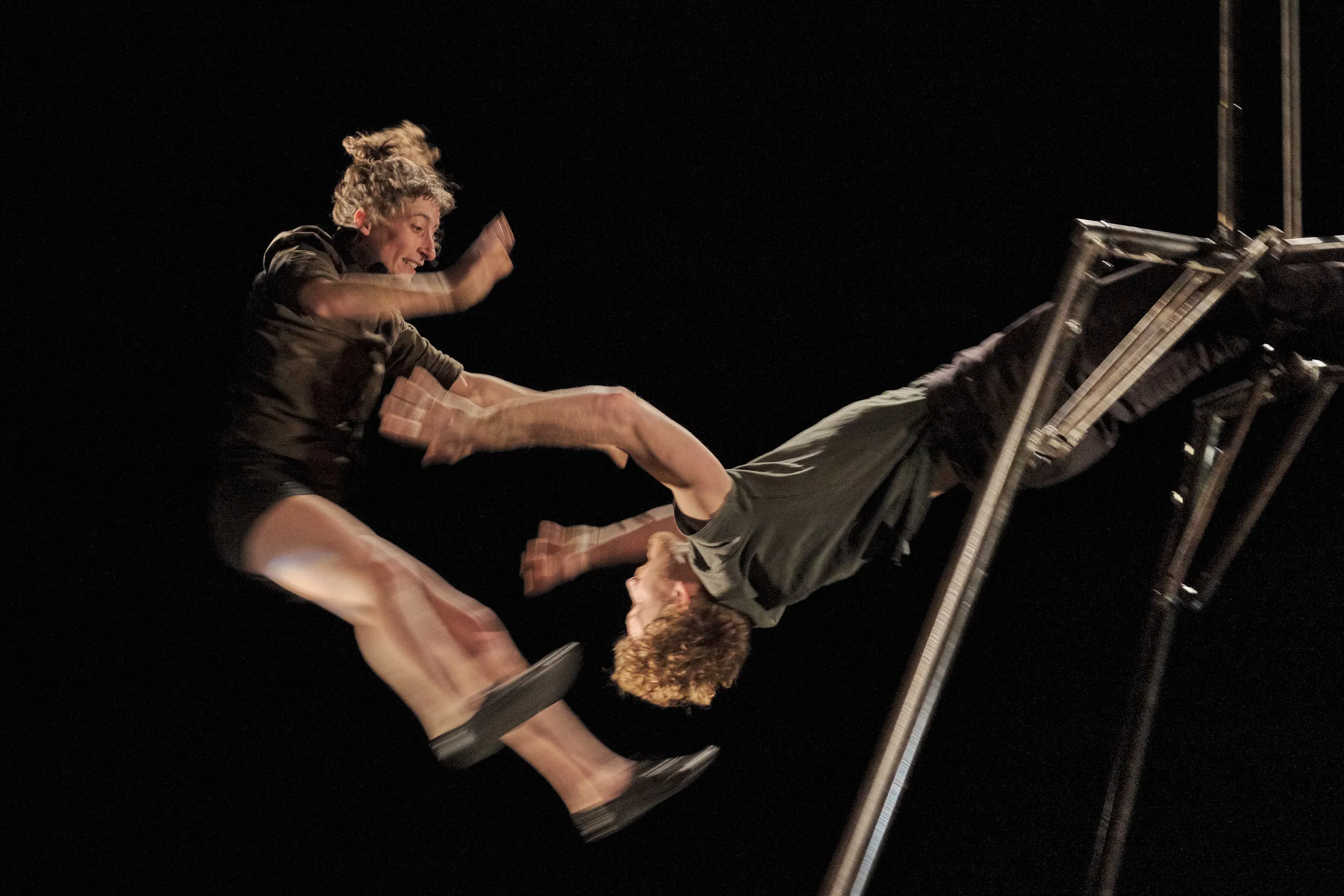 Inès Maccario avec Antoine Deheppe, dans le spectacle Contre-Temps